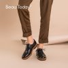 BeauToday Brogues Women Genuine Cow Leather Derby Shoes Retro Round Toe Lace-up Spring Autumn Ladies Flats Handmade 21445