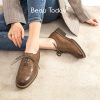 BeauToday Oxfords Women Wingtip Genuine Leather Calfskin Flats Lace-Up Pointed Toe Lady Brogue Shoes Handmade 21094